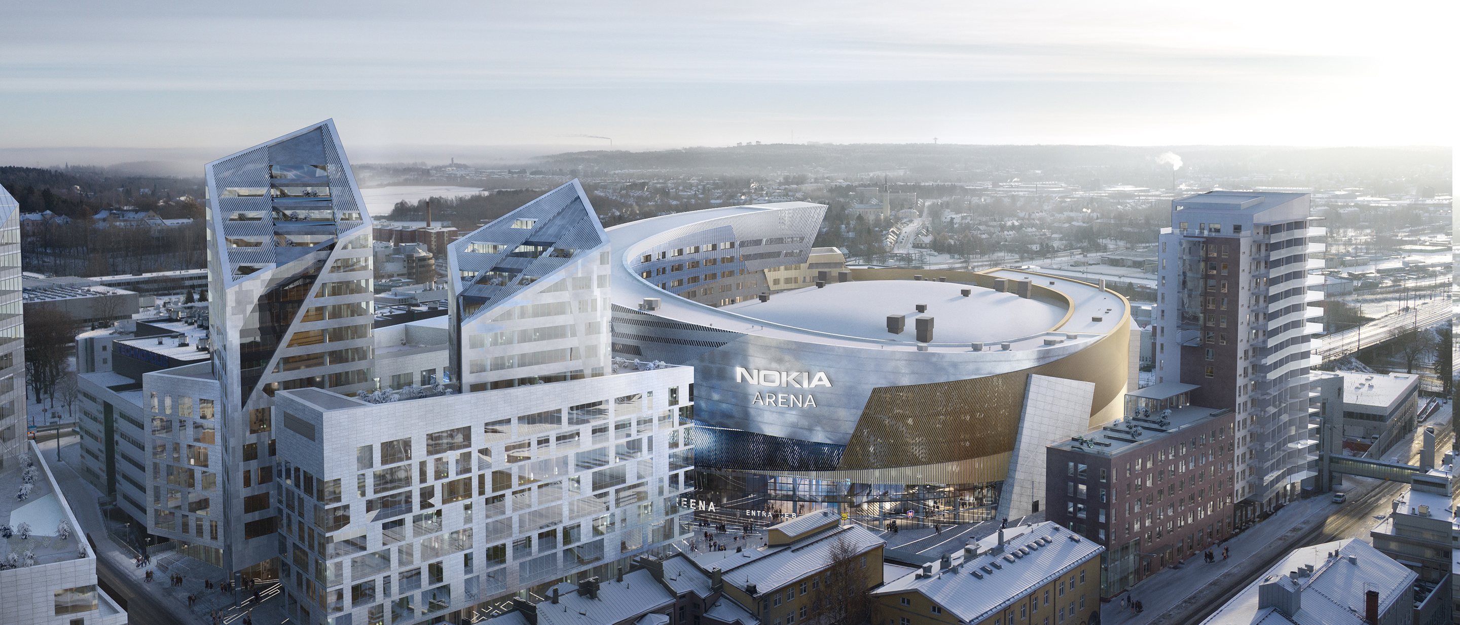 El proyecto Nokia Arena y Crown Central Deck es un ambicioso proyecto de renovación urbana, situado en una ubicación fundamental dentro de Tampere, en Finlandia. Vuelve a unir el tejido urbano a través de un ferrocarril existente y crea un nuevo y vibrante centro lleno de actividad destinada al ámbito laboral, al ocio y la cultura de alta calidad para la ciudad y el país. El proyecto de uso mixto consiste en un estadio multifuncional de hockey sobre hielo con capacidad para 11.000 aficionados, pero también cuenta con una galería comercial, bares y restaurantes a nivel de la cubierta. El estadio redefine su función fundamental como centro para la realización de diversas actividades urbanas. El área también incluye un hotel y cinco torres adyacentes para uso de oficinas, residencial y tiendas.