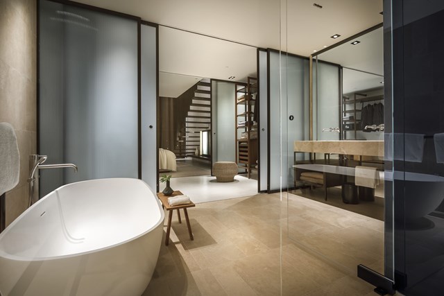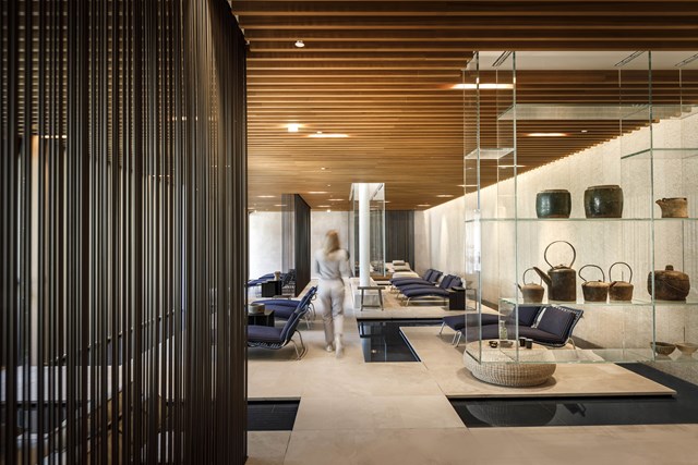 L'architecte et designer italien Piero Lissoni était en charge de la décoration intérieure. Les espaces communs de l'hôtel sont caractérisés par une multitude de détails, y compris l'utilisation de verres feuilletés à l'intérieur de l'hôtel comme élément fonctionnel et décoratif. Une attention particulière a été consacrée au style. Les matières, les tons terreux et les couleurs prévalent dans les chambres, contrepoint au ciel bleu et à la mer qui entourent l'hôtel.