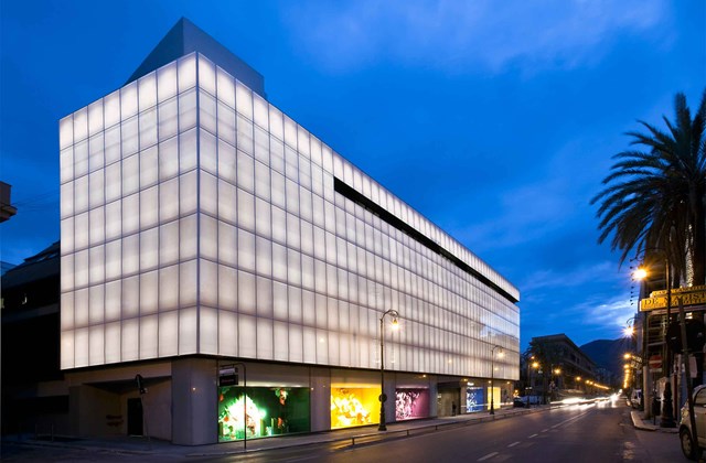 Le projet pour les magasins Rinascente à Palerme souhaitait obtenir un effet puissant mais délicat dans le même temps. Pour réussir à trouver cet équilibre, les empreintes du bâtiment existant ont été conservées en les superposant sur une façade opalescente, ce qui apporte un aspect d’édifice transparent. Cette “peau glaciale”, avec Evalam Color pour extérieurs, est une surface architecturale à travers laquelle, pendant la journée, il est encore possible de voir la partie ancienne, ce qui la convertit à la dimension contemporaine. La nuit, le bâtiment se transforme en une lanterne brillante et translucide.